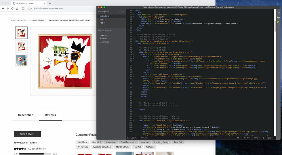 In the process of re-designing MoMA design store, I not only learned how to create a statement of work to help us manage and state our design process and results, but also learned how to build the entire website with the development of front-end code, which made me step into a new world of code.